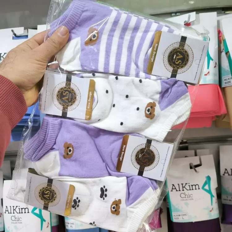 جوراب مچی زنونه طرح رد پا خرسی تم یاسی