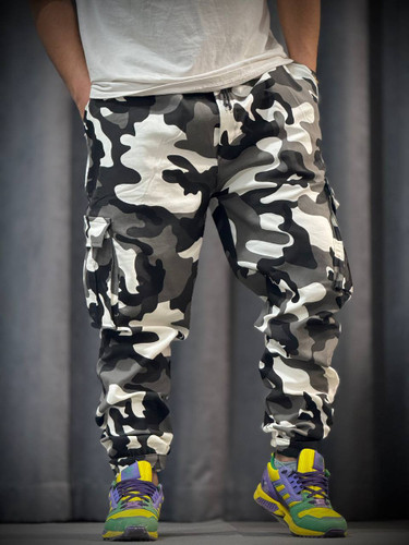 شلوار کارگو طرح دار دمپا زیپ و استوپت