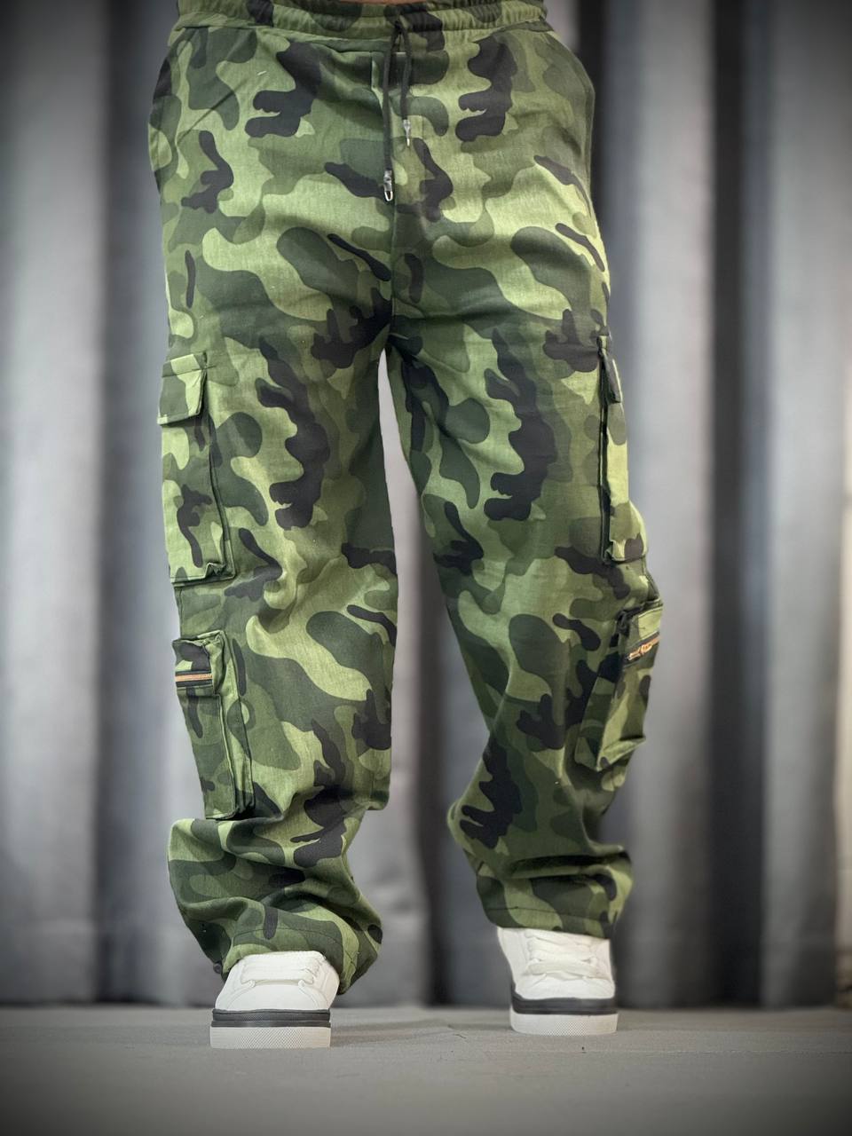 شلوار کارگو طرح دار دمپا زیپ و استوپت